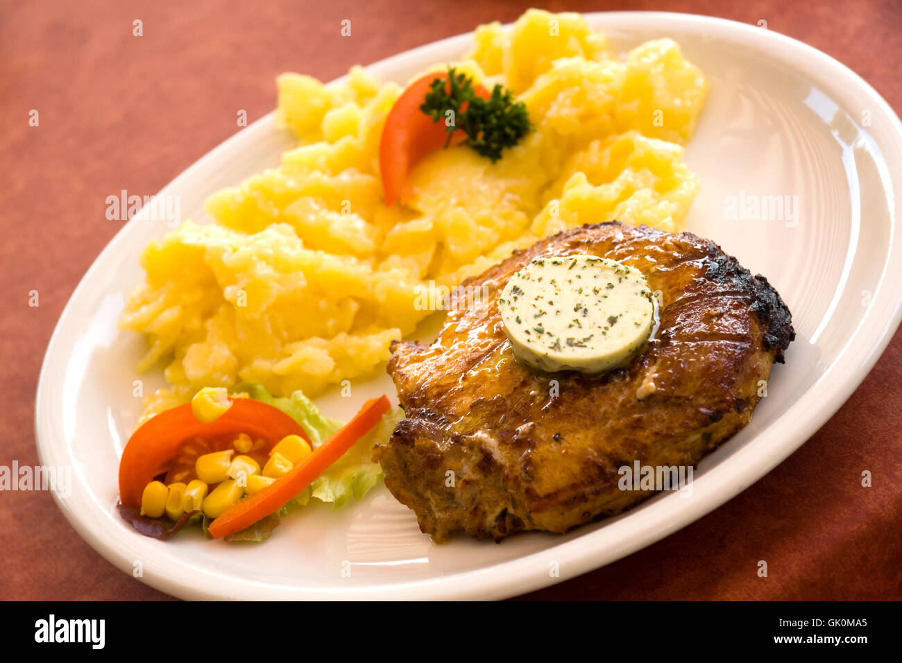 Steak Vom Schwein Kartoffelsalat Stockfotografie Alamy