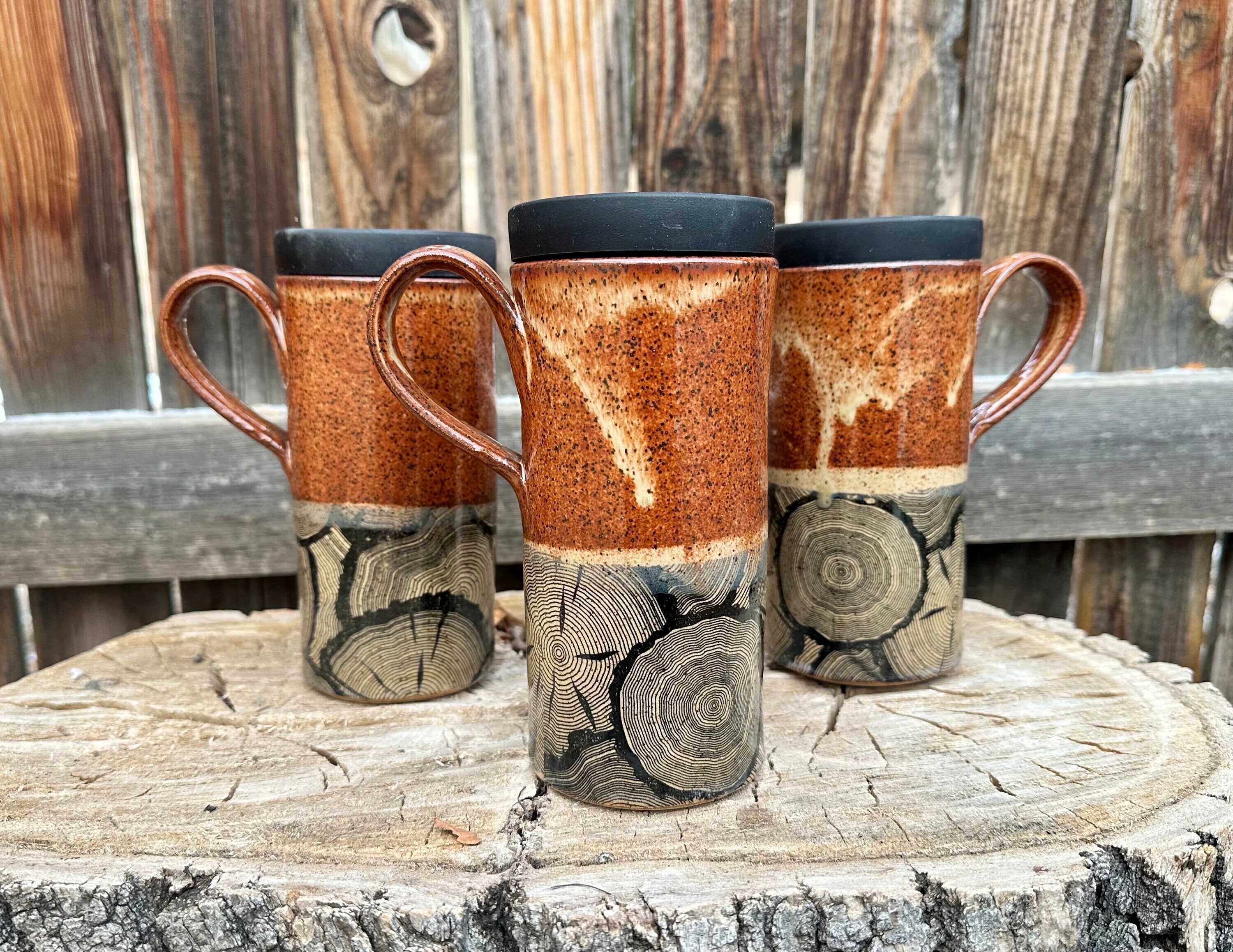 Wood Grain Travel Mug Iron Glazed Wood Scene To Go Mug Silicone Lids Travel Mug With Wood Trees Coffee And Tea Mug Outdoor To Go